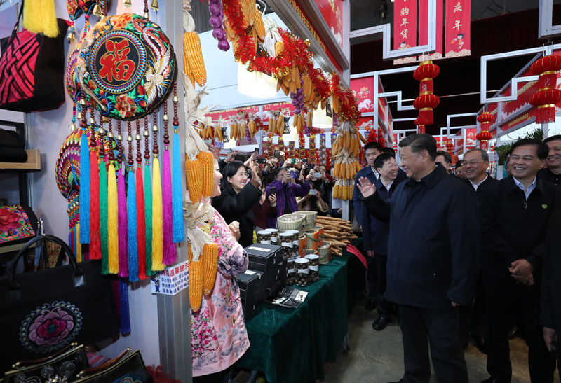 1月19日至21日,中共中央总书记、国家主席、中央军委主席习近平来到云南,看望慰问各族干部群众,向全国人民致以新春祝福。这是20日下午,习近平在昆明新春购物博览会年货街,了解春节前市场供应情况。新华社记者 鞠鹏 摄