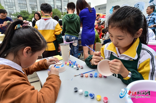 在静态板块的“童年的‘陶’气”展位,小朋友们正在陶艺师傅的细心指导下,学习陶艺。“找重心、拉高、做罐身和修饰罐口是陶瓷制作的关键。”小朋友们不但可以体验花瓶毛坯的制作,还可以进行陶瓷绘画。“每次体验只需20元,还可以把陶瓷带走。”磁灶岭畔小学的老师告诉记者。
